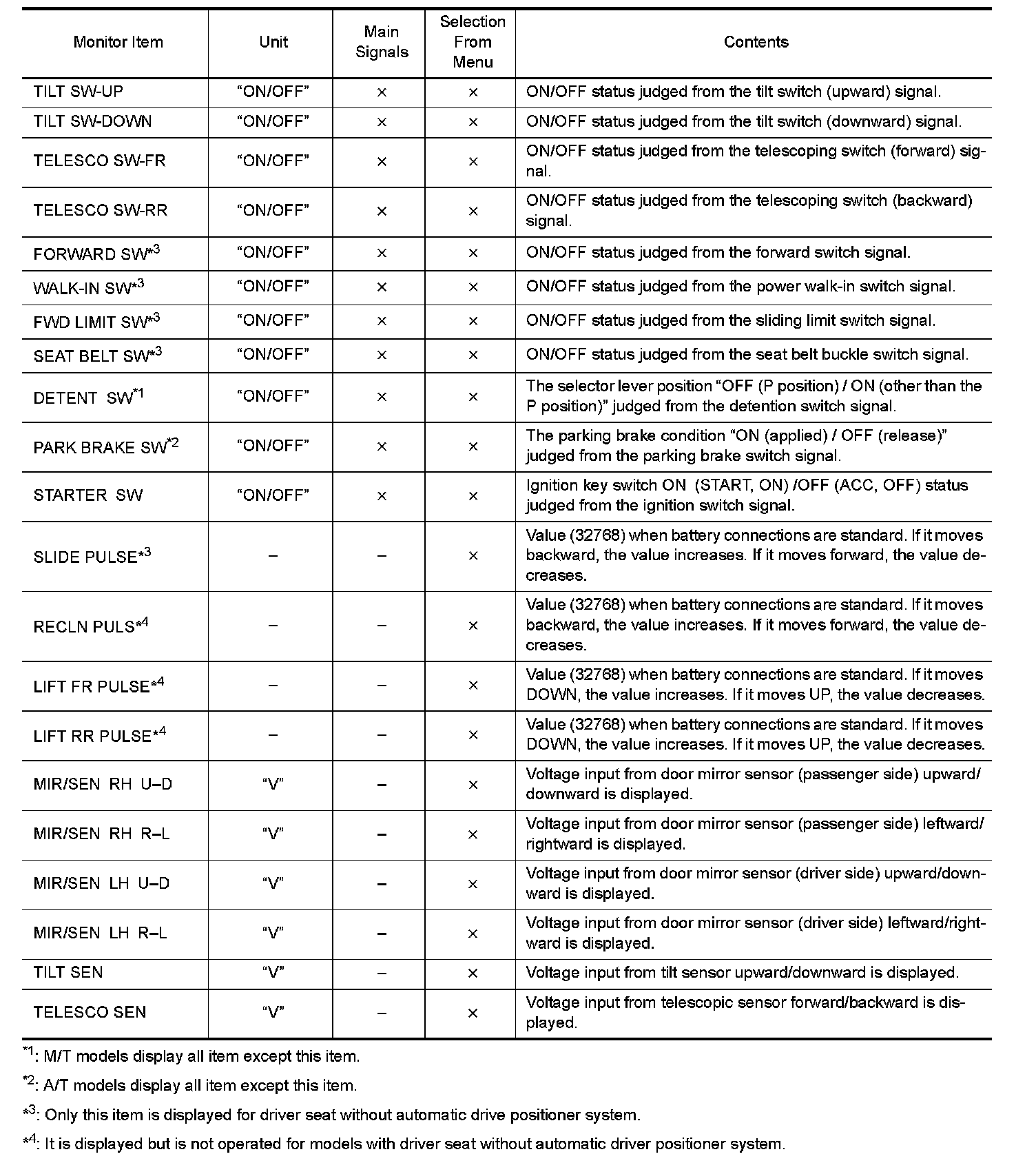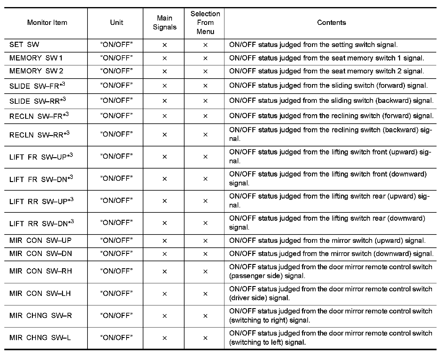 The following table includes information (items) inapplicable to this vehicle. For information (items) applicable to this vehicle, refer to CONSULT display items.