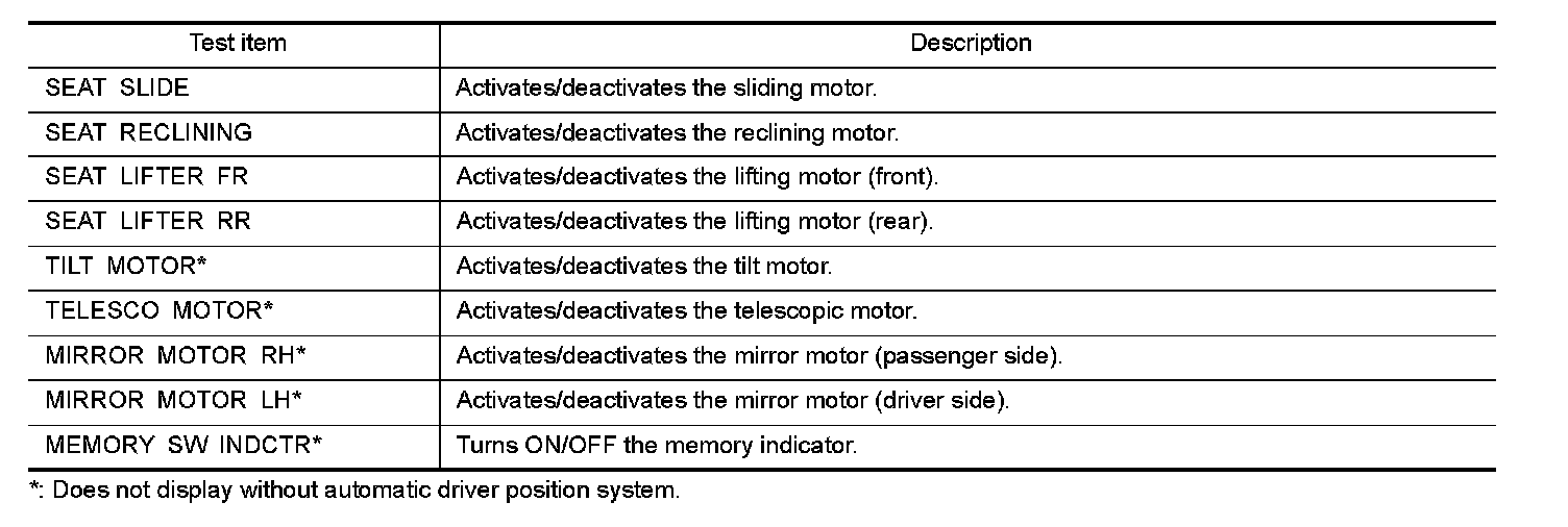 The automatic drive positioner system can be checked and diagnosed for component operation using CONSULT.