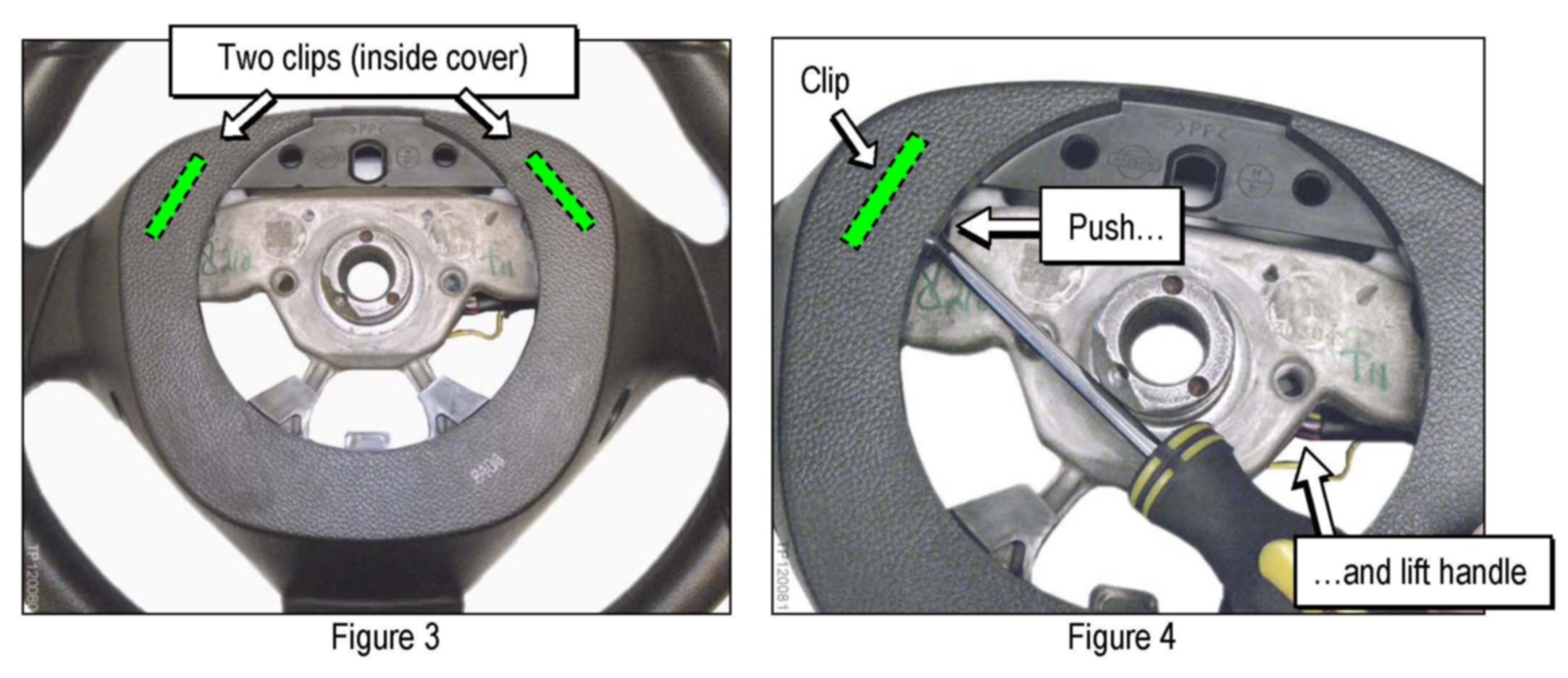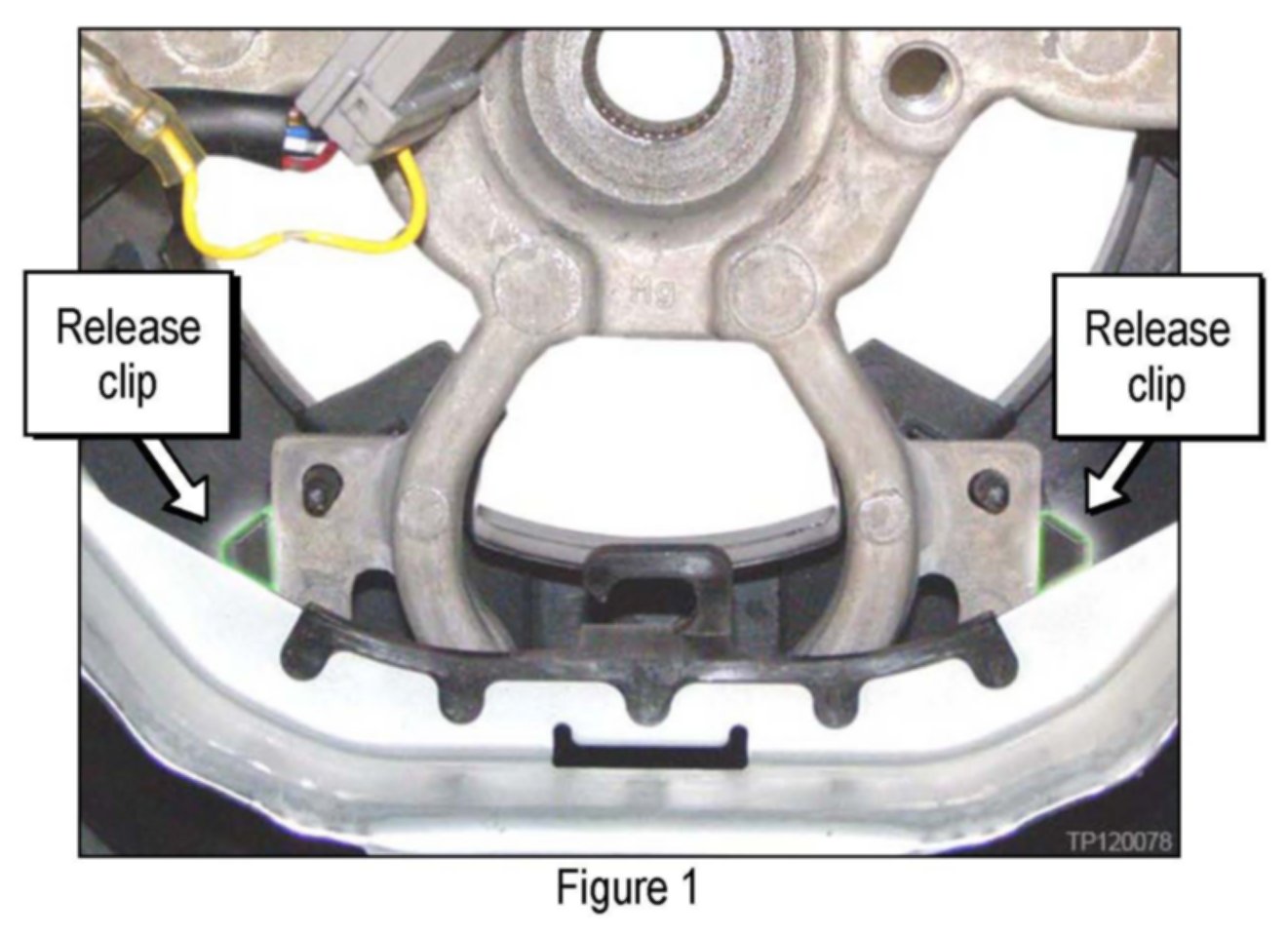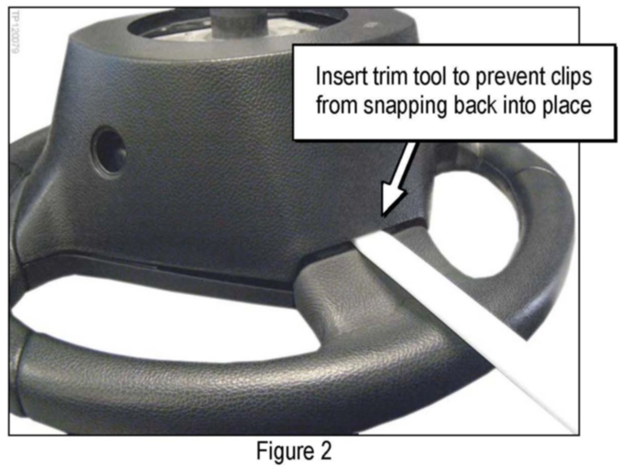 ^ Insert a plastic trim tool between the back cover and the steering wheel assembly, as shown in Figure 2.