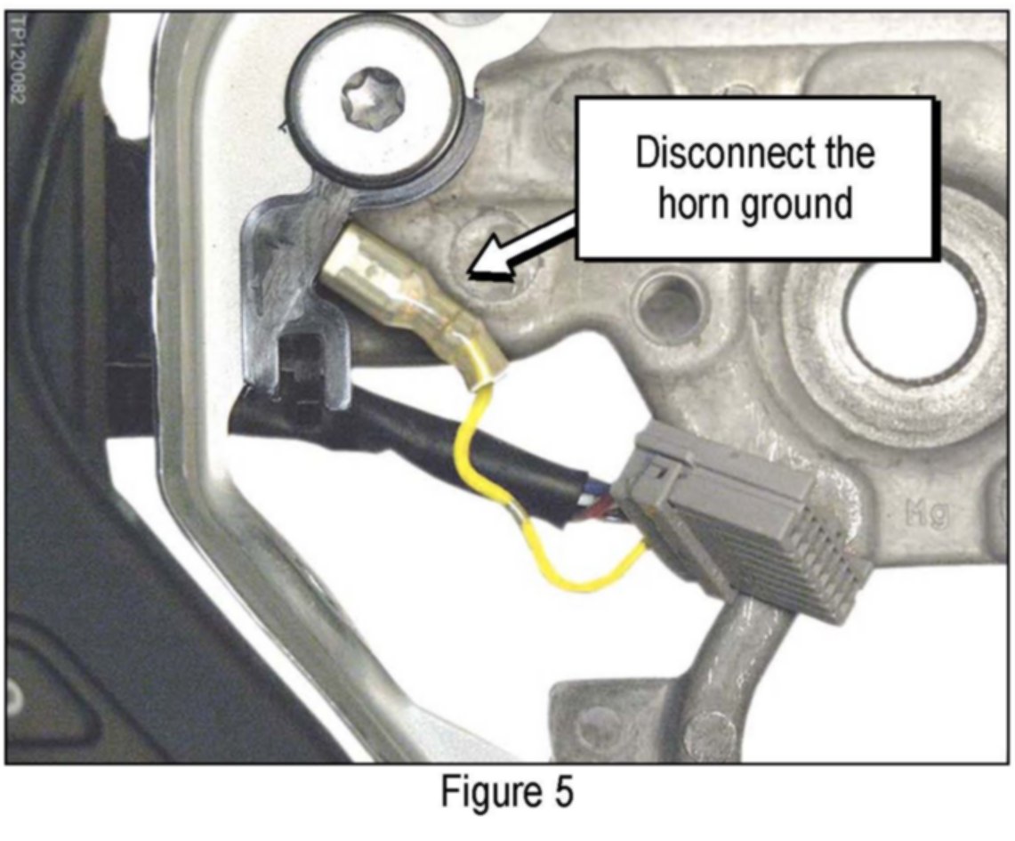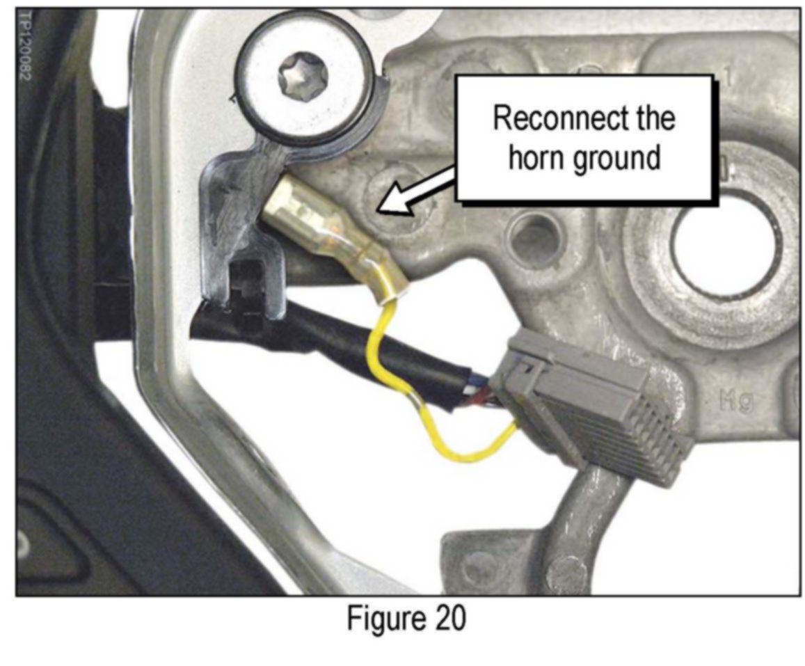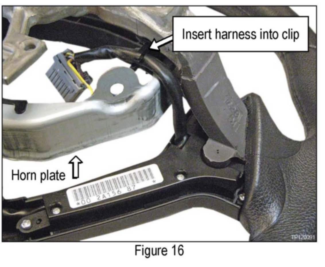 c. Move the harness up and over into horn plate as shown in Figure 16.