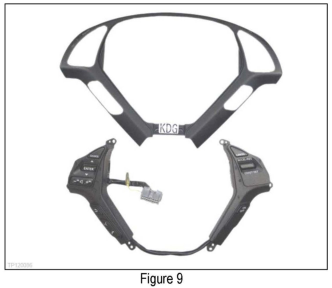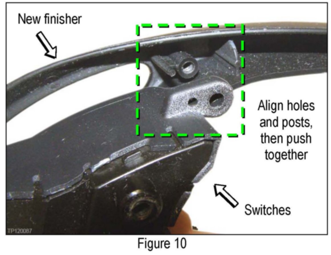 12. Install the new steering wheel switch finisher listed in the Parts Information section.