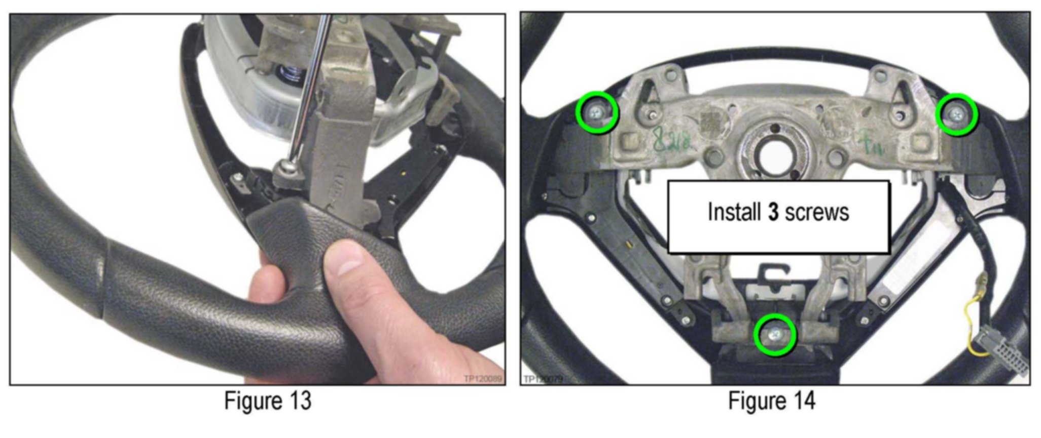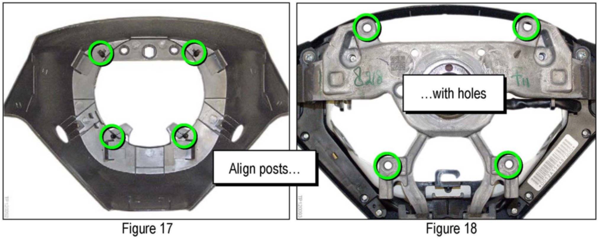 14. Install the new steering wheel back cover listed in the Parts Information section.