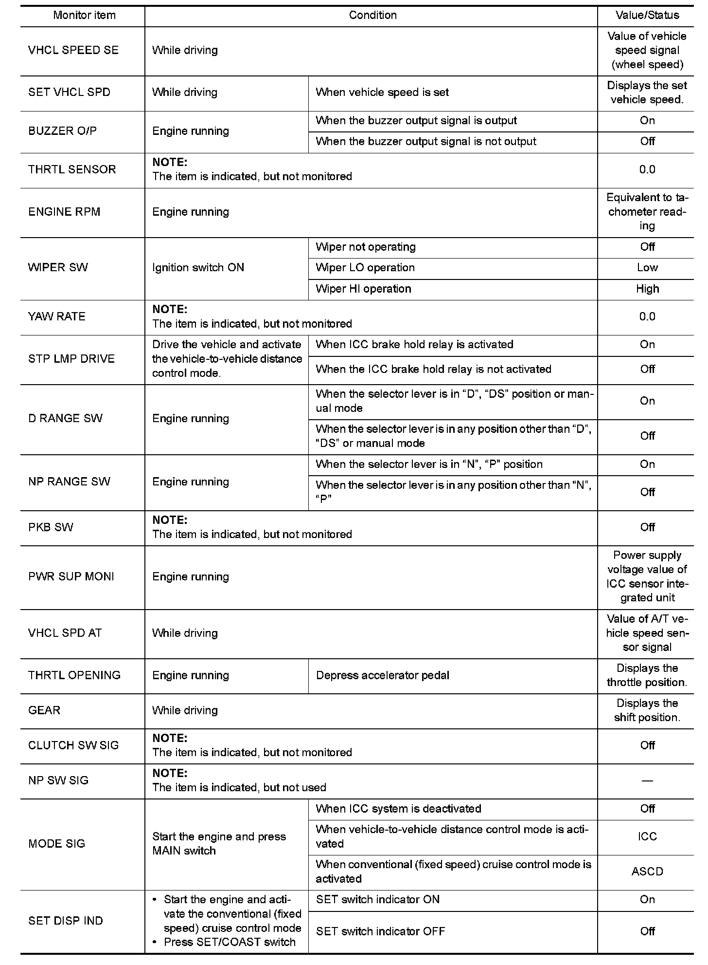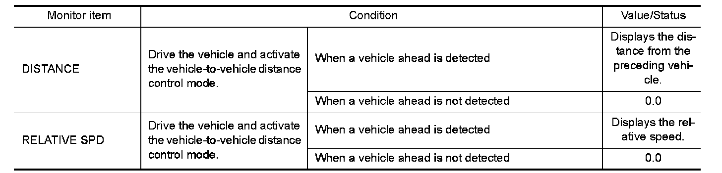 The following table includes information (items) inapplicable to this vehicle. For information (items) applicable to this vehicle, refer to CONSULT display items.