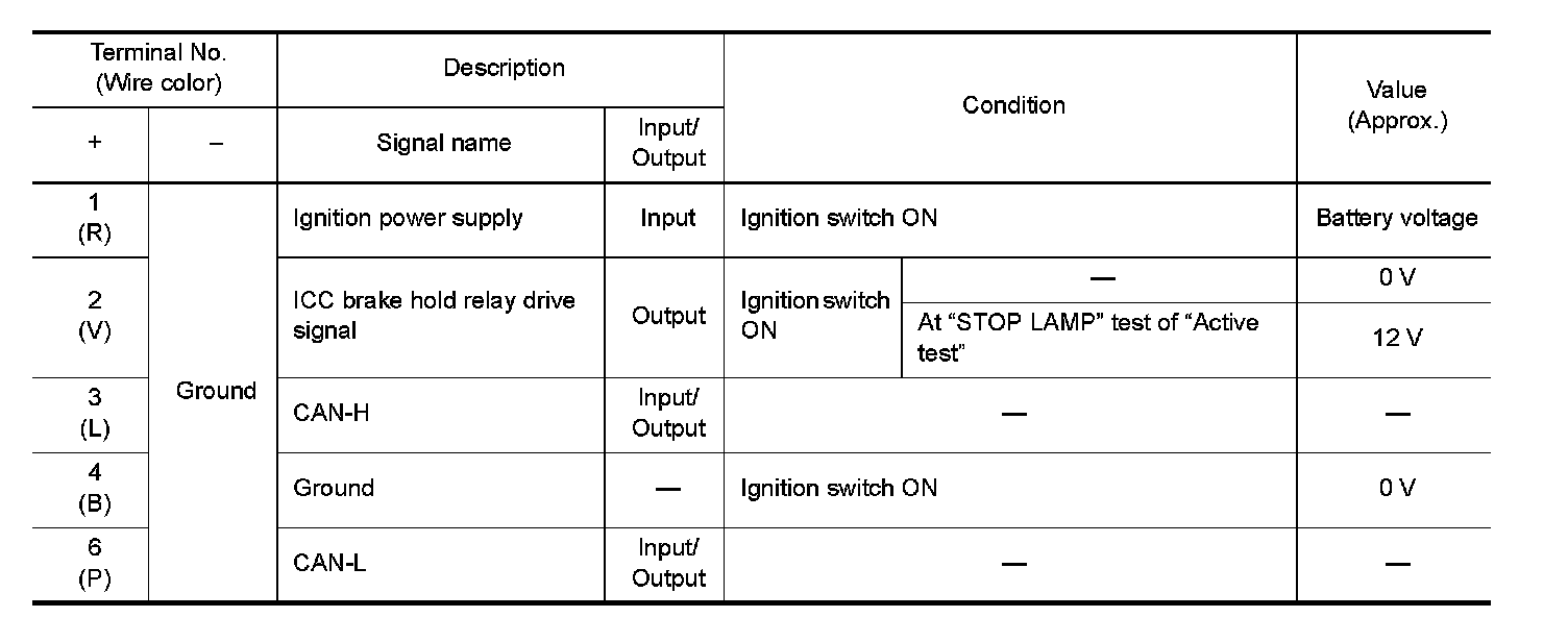 Pinout Values and Diagnostic Parameters
