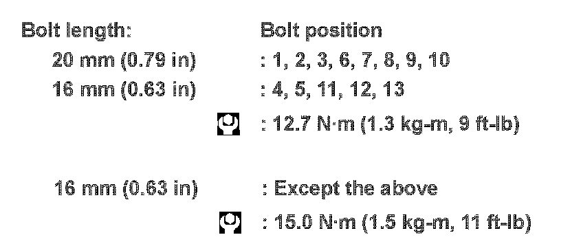 - There are three types of mounting bolts. Refer to the following for locating bolts.