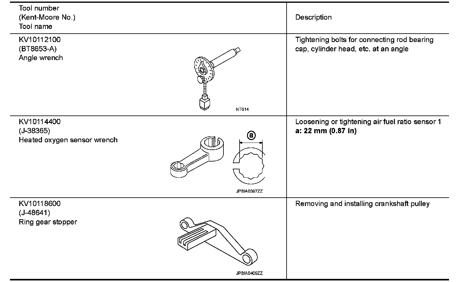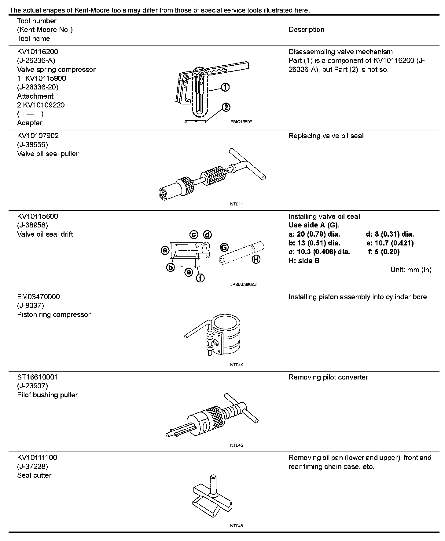 The actual shapes of Kent-Moore tools may differ from those of special service tools illustrated here.