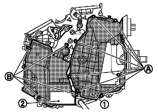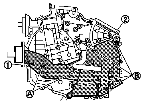 3.Remove fixing screws (B), and then remove foot duct LH (2).