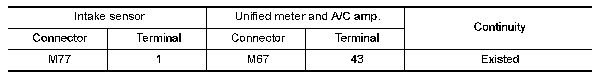 3.Check continuity between intake sensor harness connector and unified meter and A/C amp. harness connector.