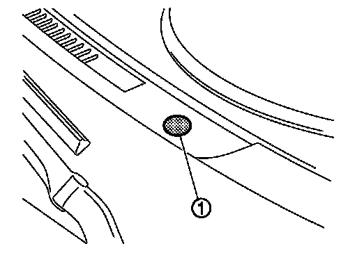 The sunload sensor (1) is located on the front defroster grille LH. It detects sunload entering through windshield by means of a photo diode. The sensor converts the sunload into a current value which is then input into the unified meter and A/C amp.
