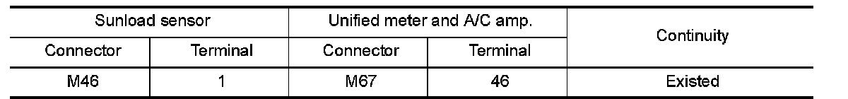 3.Check continuity between sunload sensor harness connector and unified meter and A/C amp. harness connector.