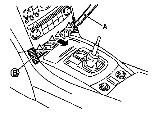 1.Remove screws (B) of center console assembly front side with screw driver (A).