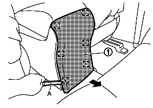 1.Remove knee protector mounting bolts (A) with power tool, and then remove knee protector (1).