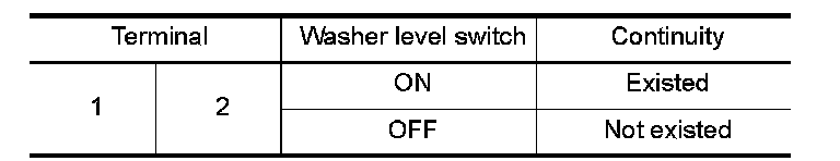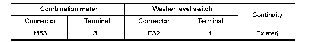 3.Check continuity between combination meter harness connector terminal and washer level switch harness connector terminal.