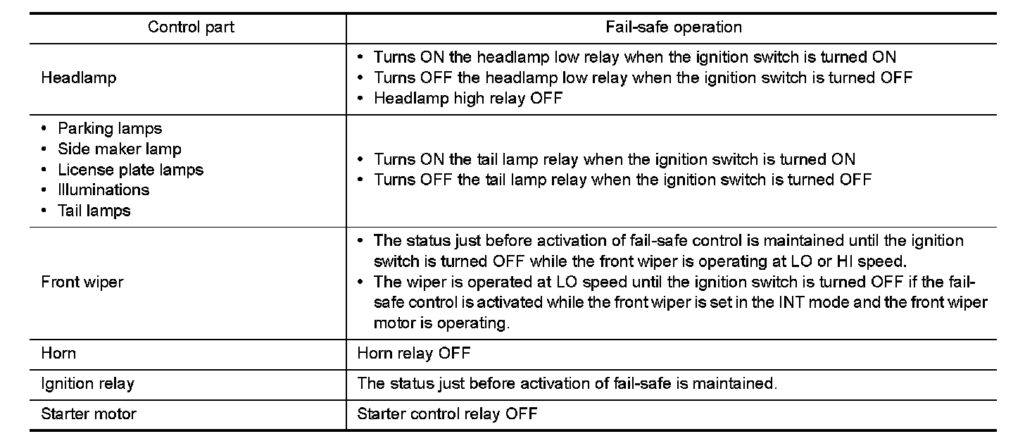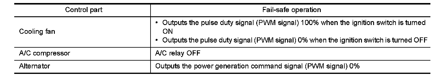 When CAN communication with ECM and BCM is impossible, IPDM E/R performs fail-safe control. After CAN
