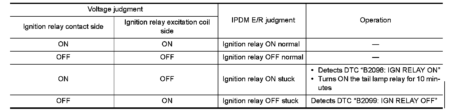 - IPDM E/R judges the ignition relay error if the voltage differs between the contact circuit and the excitation coil circuit.