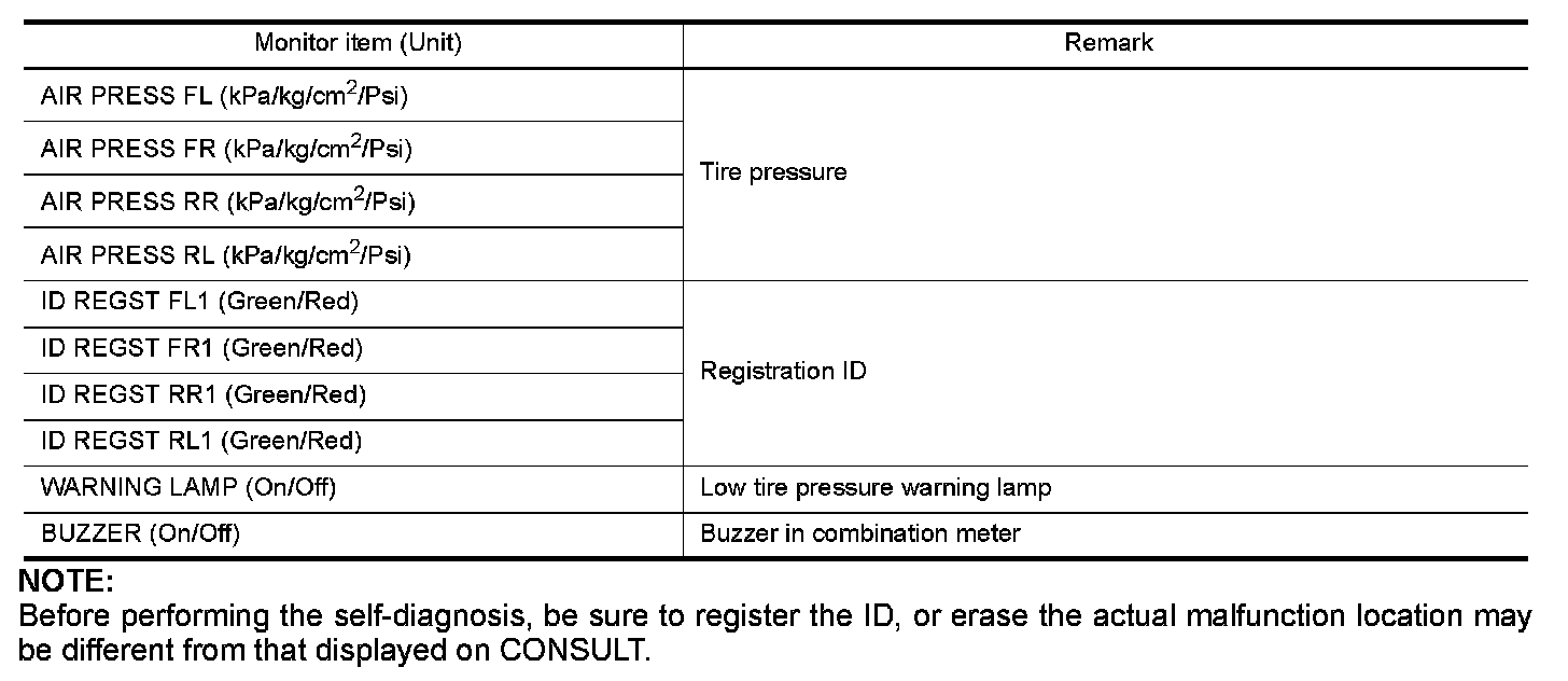 Before performing the self-diagnosis, be sure to register the ID, or erase the actual malfunction location may be different from that displayed on CONSULT.