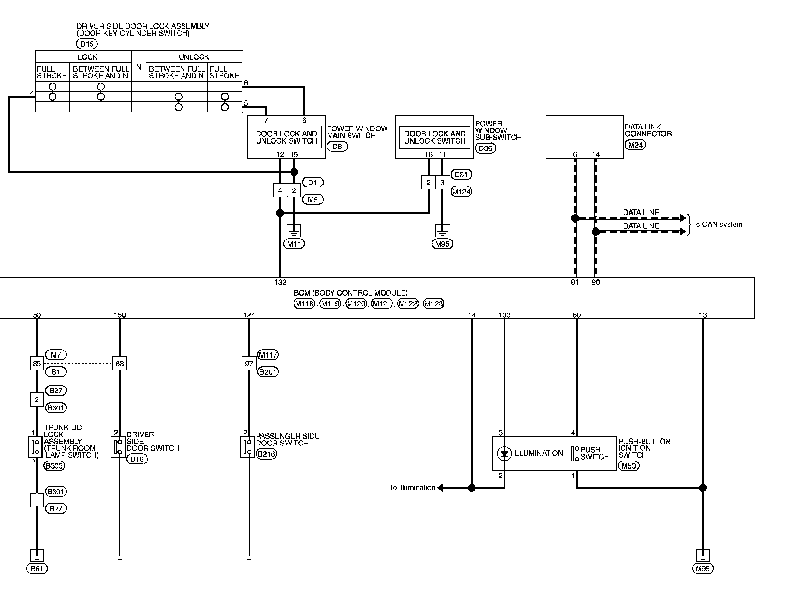 For connector terminal arrangements, harness layouts, and alphabets in a (option abbreviation; if not described in wiring diagram), refer to "Connector Information" Connector Information.