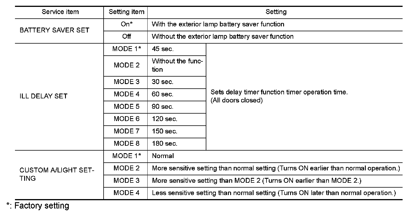 *: Factory setting