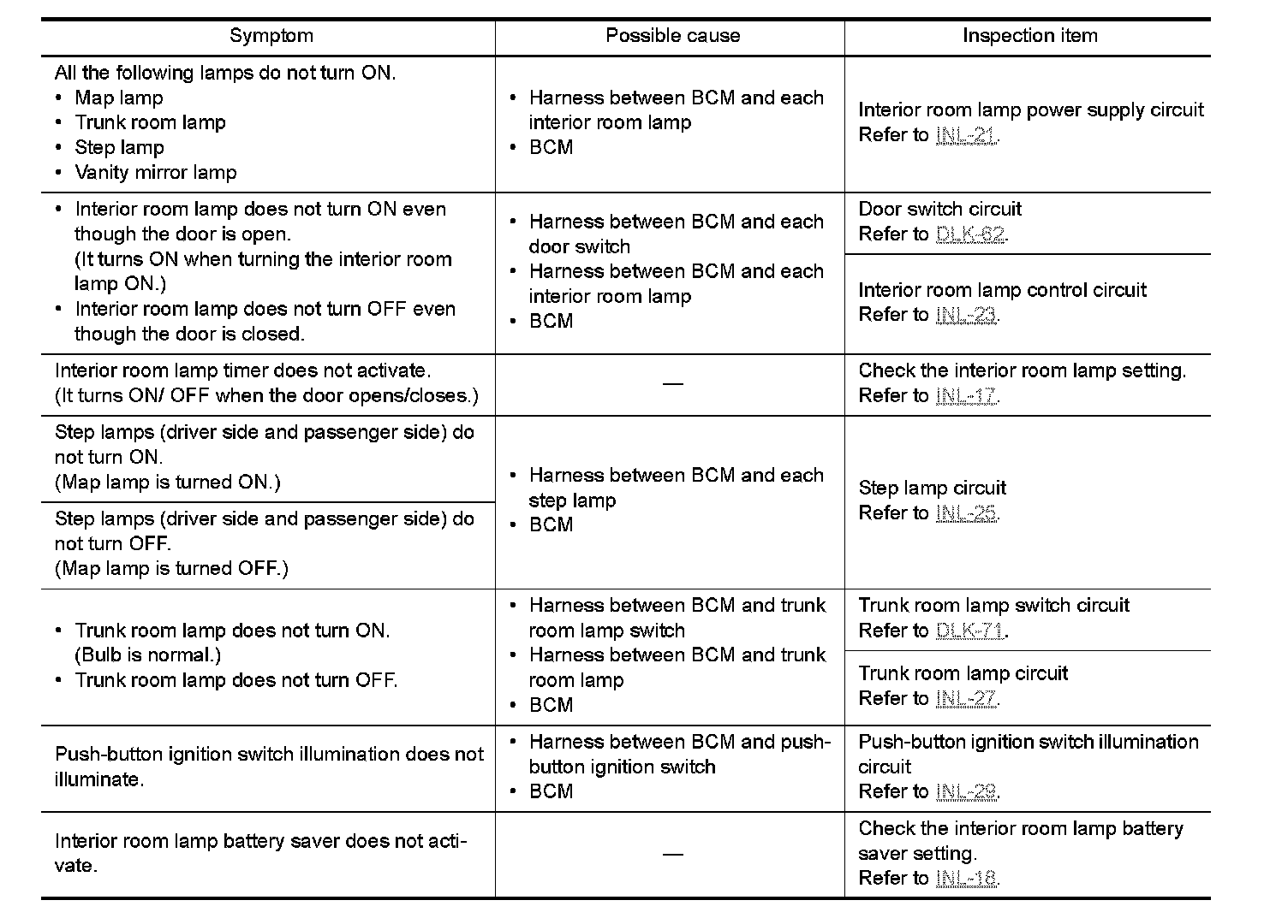 INTERIOR LIGHTING SYSTEM SYMPTOMS