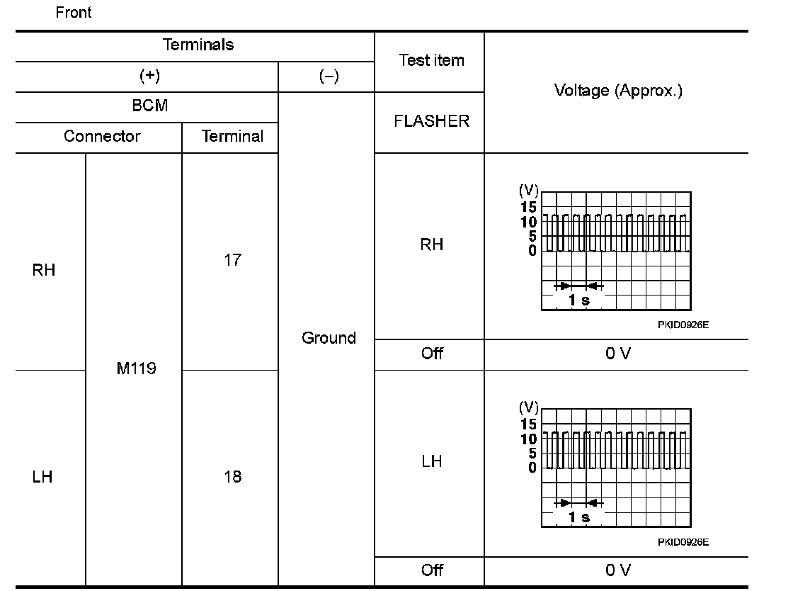 5.With operating the turn signal switch, check the voltage between the BCM harness connector and the ground.