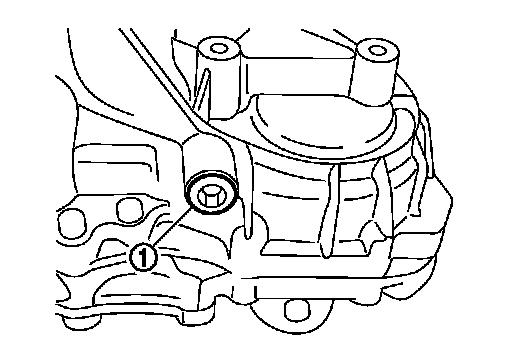 2.Stop the engine, and remove the drain plug (1) to drain the transfer fluid.