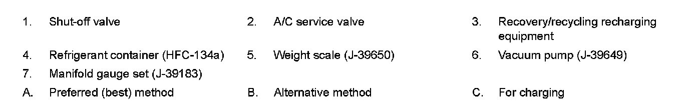 Remove HFC-134a (R-134a) from A/C system using certified service equipment meeting requirements of SAE J-2210 [HFC-134a (R-134a) recycling equipment] or J-2209 [HFC-134a (R-134a) recovery equipment]. Ventilate work area before resuming service if accidental system discharge occurs. Additional health and safety information may be obtained from refrigerant and lubricant manufacturers.
