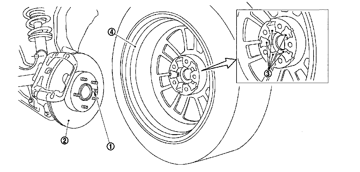 - Be careful not to tighten wheel nut at torque exceeding the criteria for preventing strain of disc rotor.