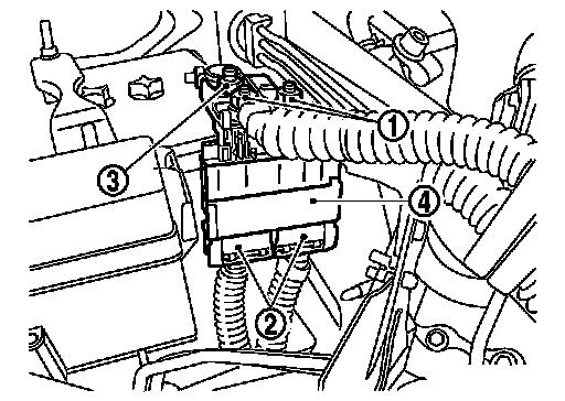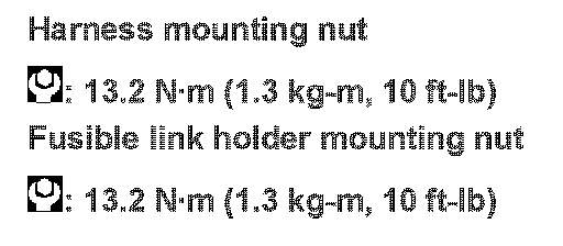5.Remove fusible link holder mounting nut (3) to remove battery terminal with fusible link (4).