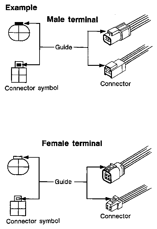 Most of connector symbols in wiring diagrams are shown from the terminal side.