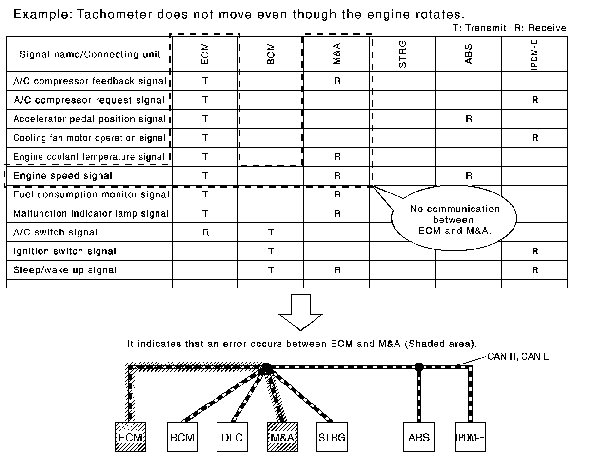The CAN communication signal chart lists the signals needed for trouble diagnosis. It is useful for detecting the root cause by finding a signal related to the symptom, and by checking transmission and reception unit.
