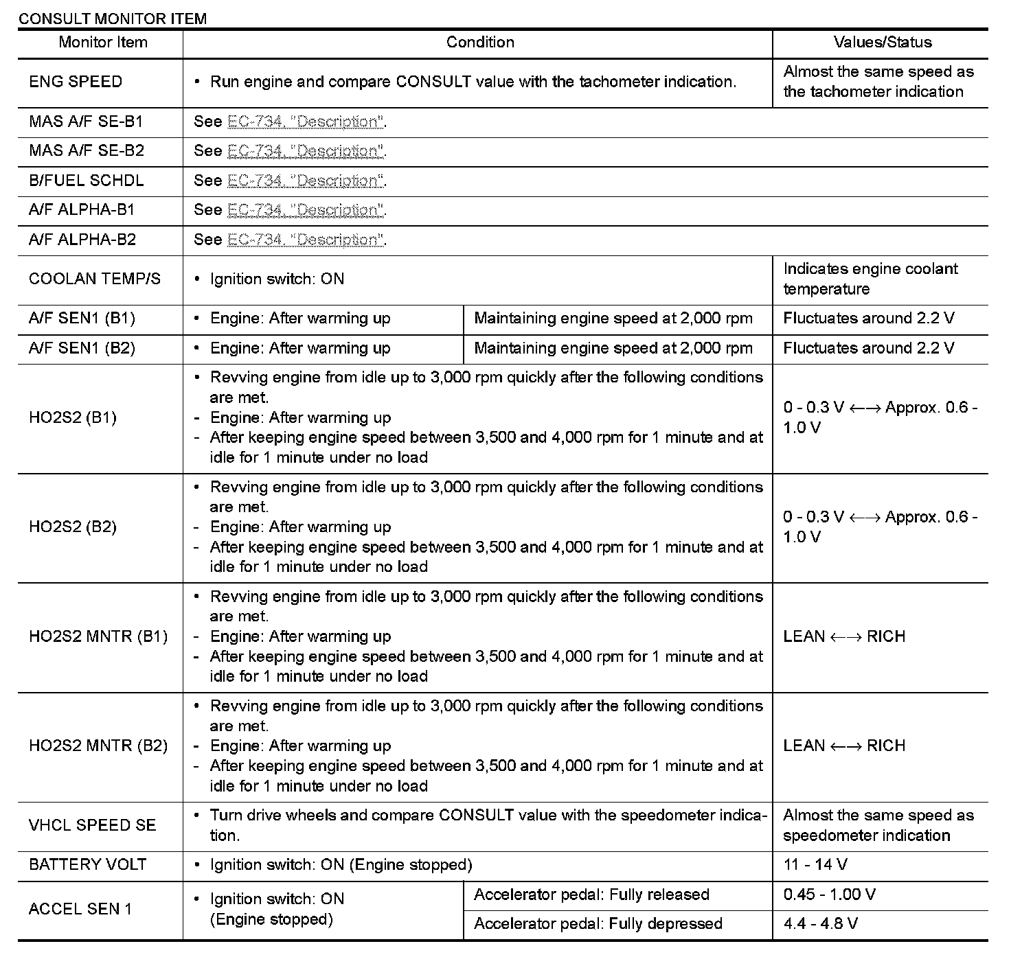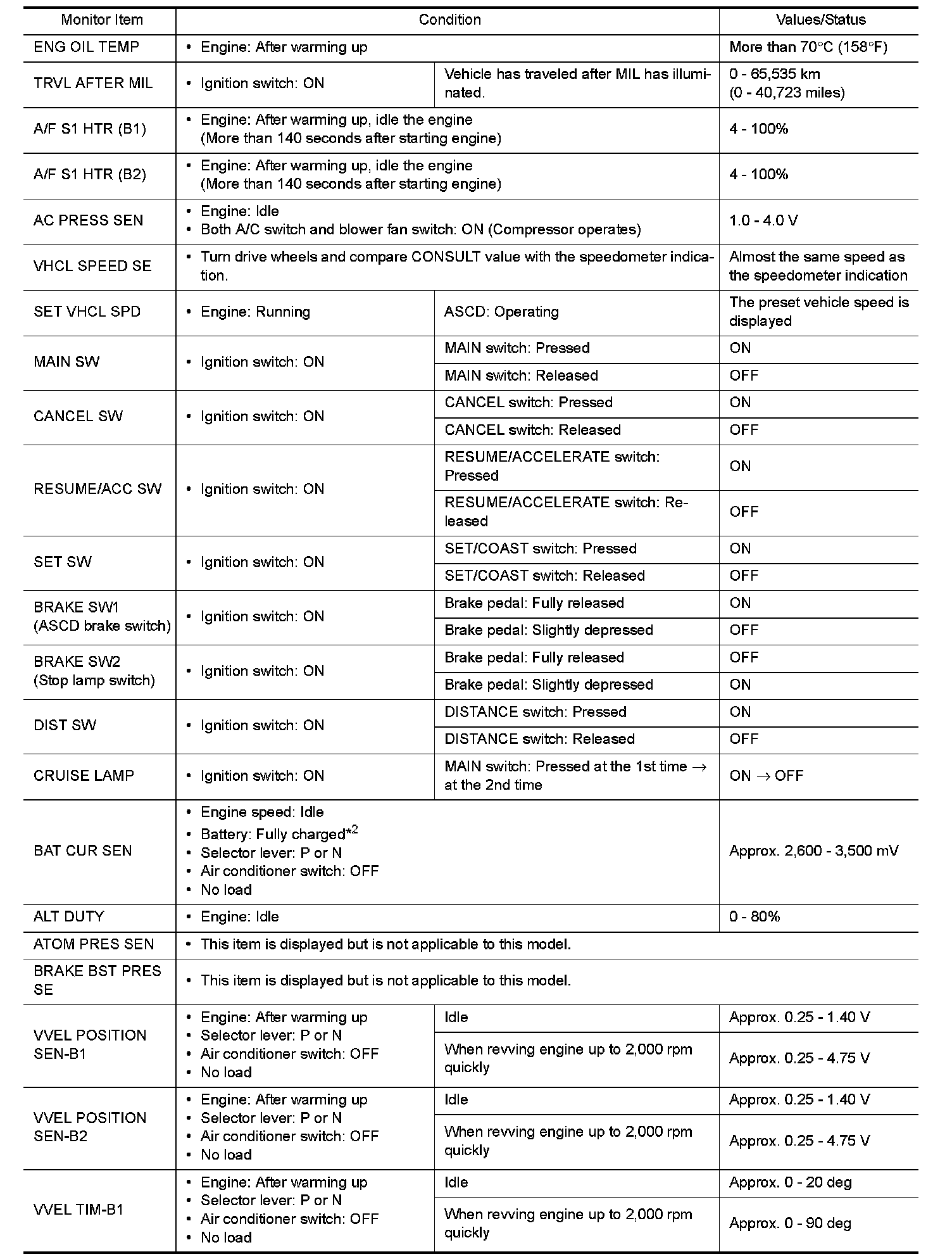 - The following table includes information (items) inapplicable to this vehicle. For information (items) applicable to this vehicle, refer to CONSULT display items.