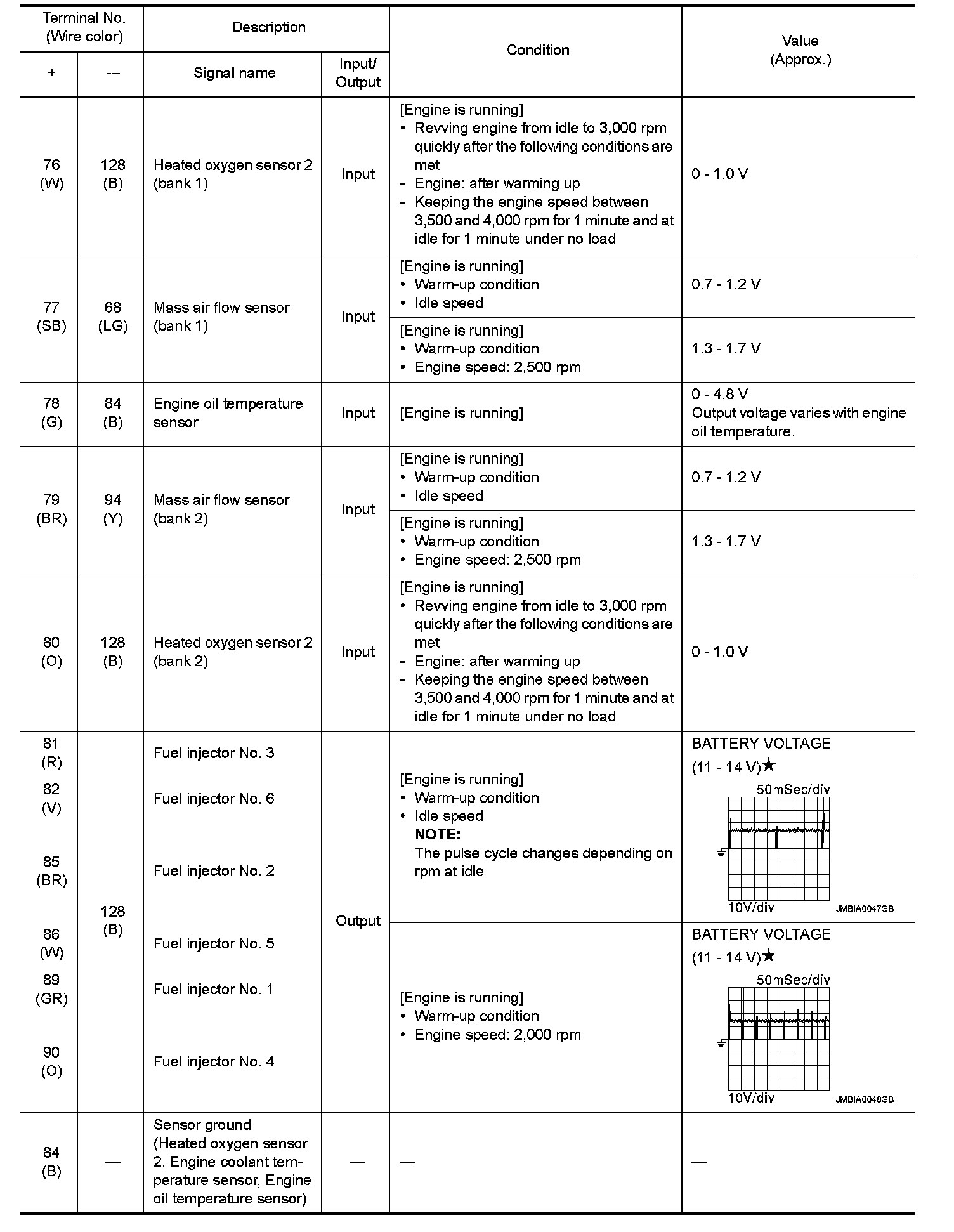 - Specification data are output/input values which are detected or supplied by the ECM at the connector.