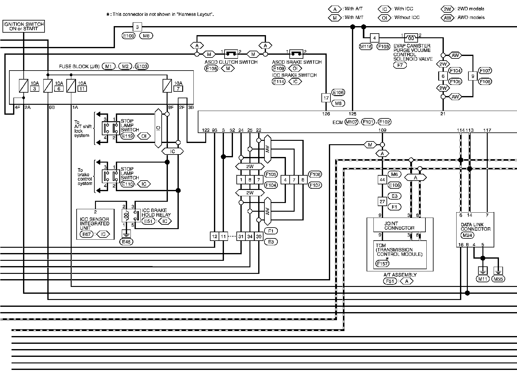 For connector terminal arrangements, harness layouts, and alphabets in a (option abbreviation; if not described in wiring diagram), refer to "Connector Information"