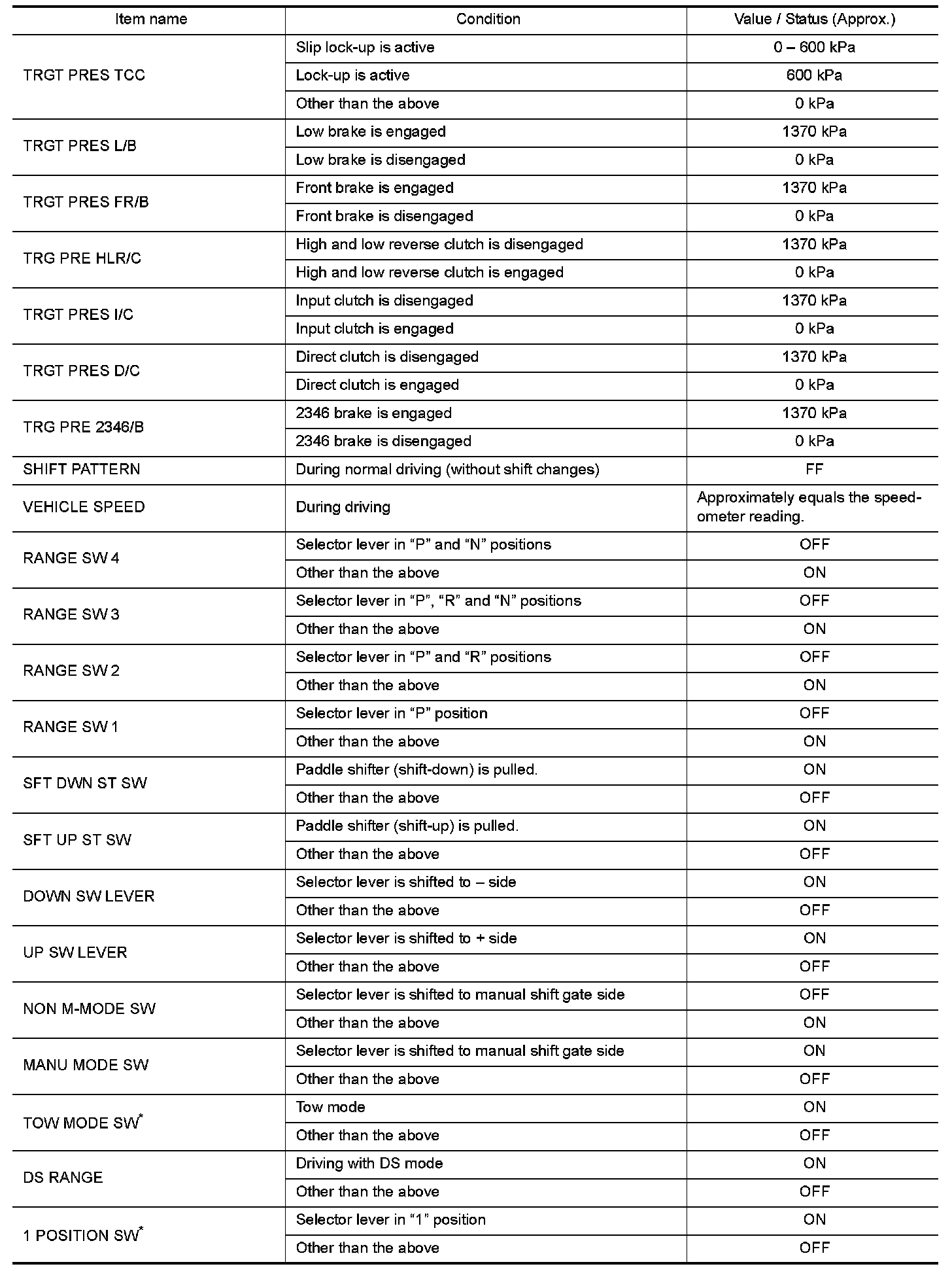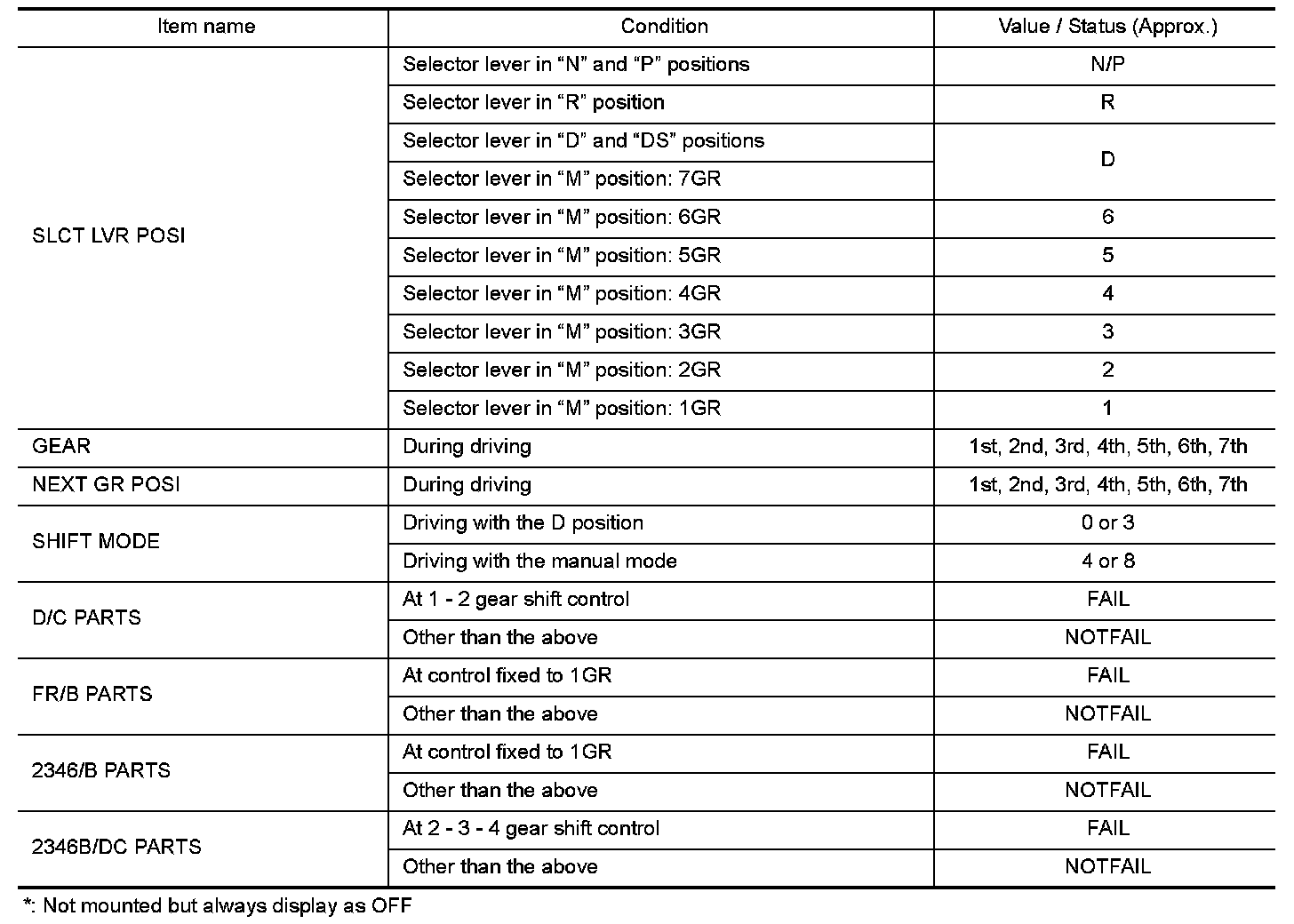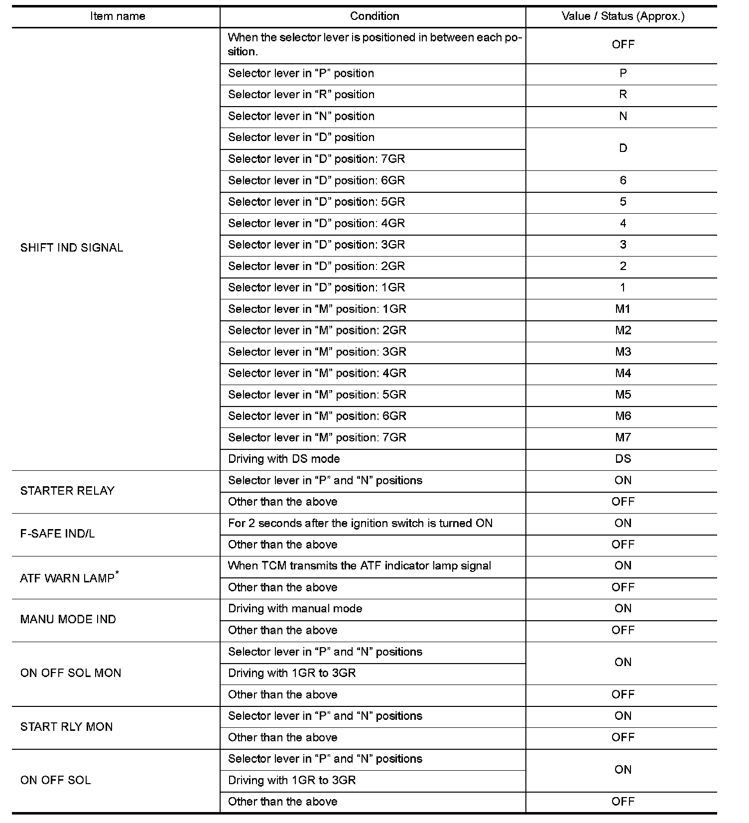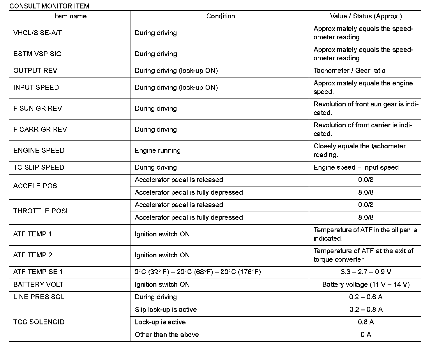 3.Shift schedule (that implies gear position) on CONSULT may slightly differ from that is described in Service Manual. This occurs because of the reasons as per the following: