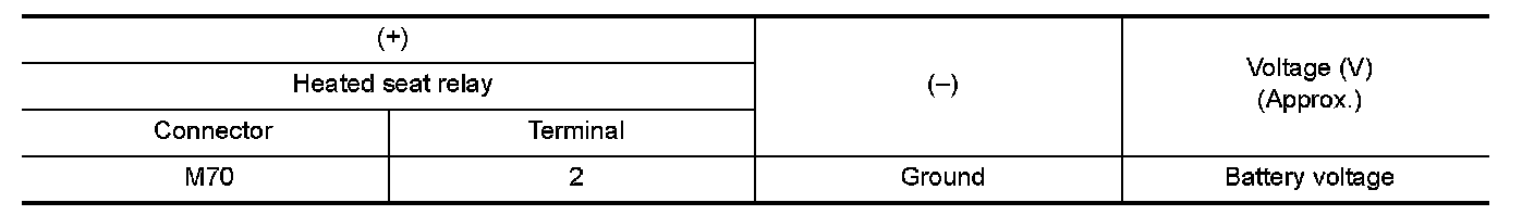 4.Check voltage between heated seat relay terminal connector and ground.