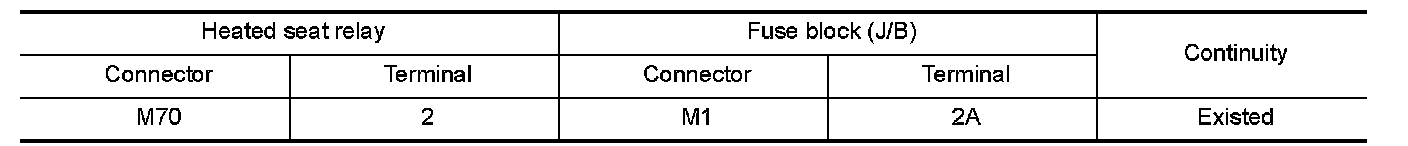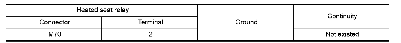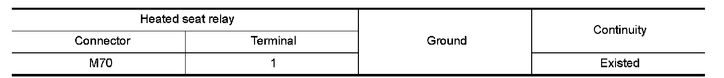 2.Check continuity between heated seat relay terminal connector and ground.