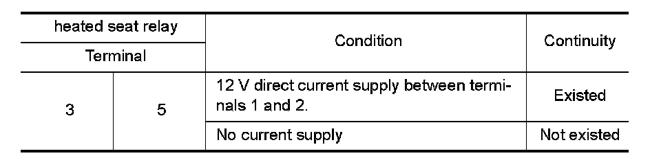 3.Check continuity between heated seat relay terminals.