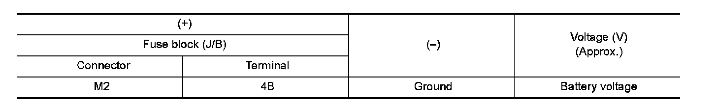 3.Check voltage between fuse block (J/B) (fuse block side) and ground.