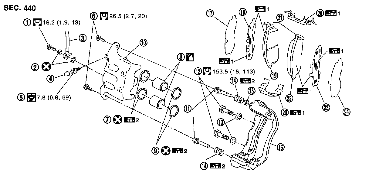 -THE LARGE ILLUSTRATIONS are exploded views (see the following) and contain tightening torques, lubrication points, section number of the