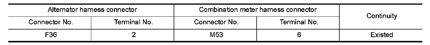 3.Check continuity between alternator harness connector and combination meter harness connector.