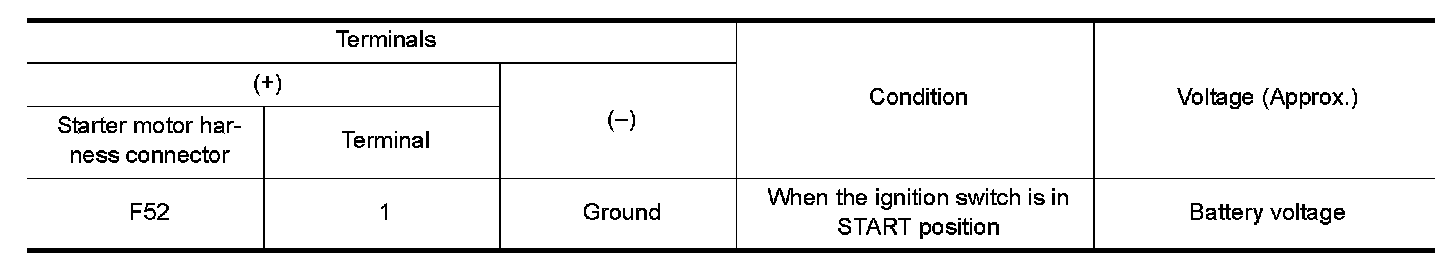 4.Check voltage between starter motor harness connector and ground.