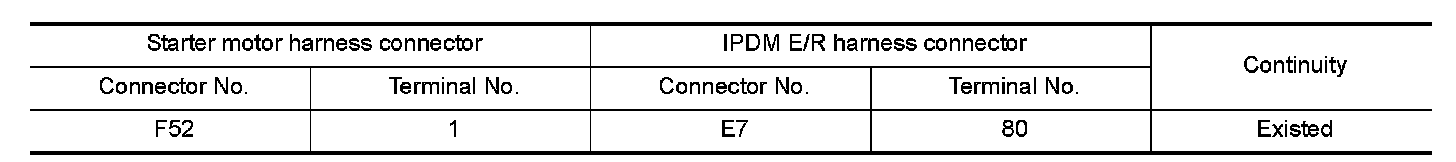 2.Check continuity between starter motor harness connector and IPDM E/R harness connector.