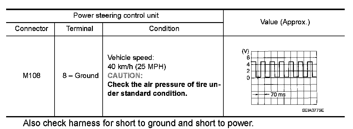 3.Check the signal between power steering control unit harness connector and ground with oscilloscope.