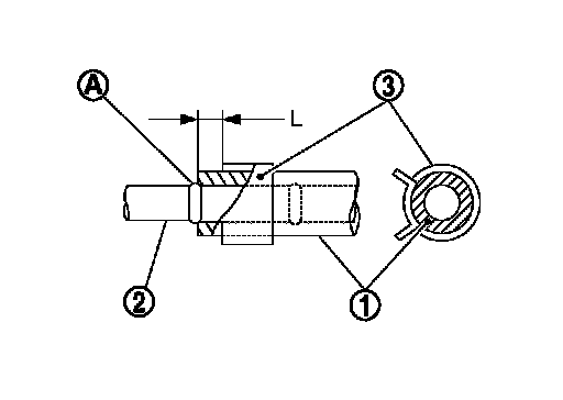 - Install clamp (3) to the hose at 3 - 8 mm (0.12 - 0.31 in) (L)