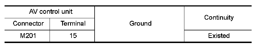 2.Check continuity between AV control unit harness connector and ground.