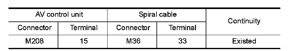2.Check continuity between AV control unit harness connector and spiral cable harness connector.
