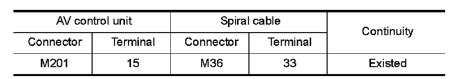 2.Check continuity between AV control unit harness connector and spiral cable harness connector.
