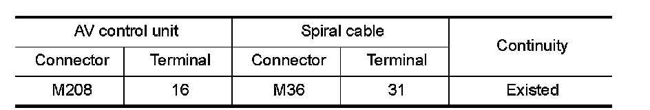 2.Check continuity between AV control unit harness connector and spiral cable harness connector.