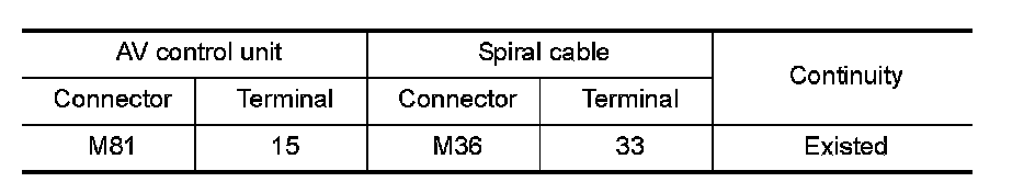 2.Check continuity between AV control unit harness connector and spiral cable harness connector.