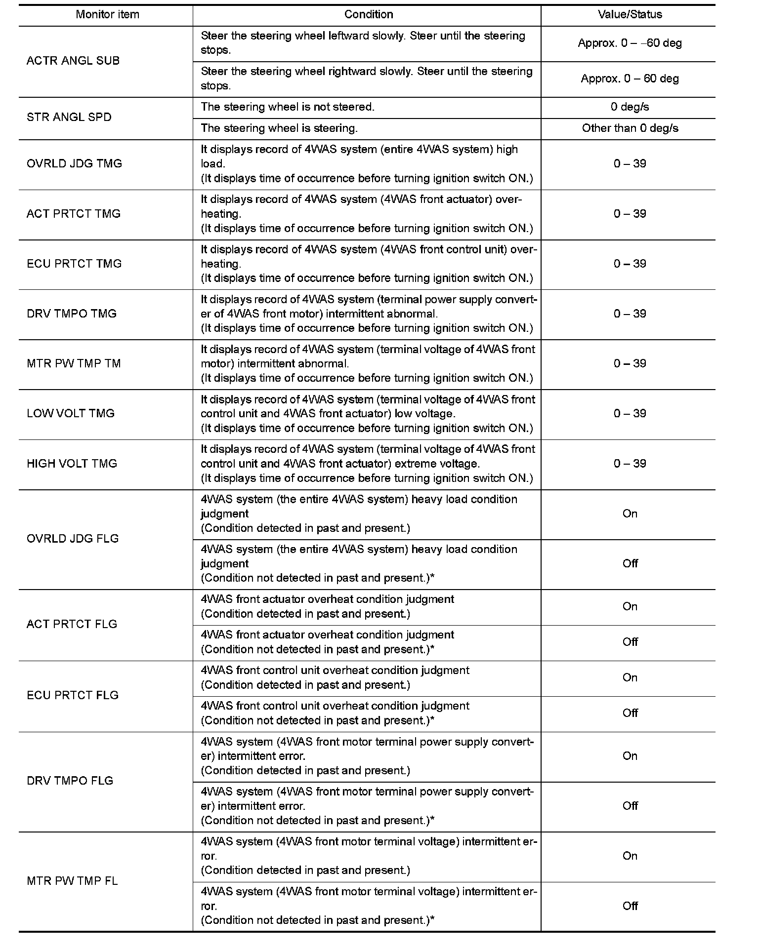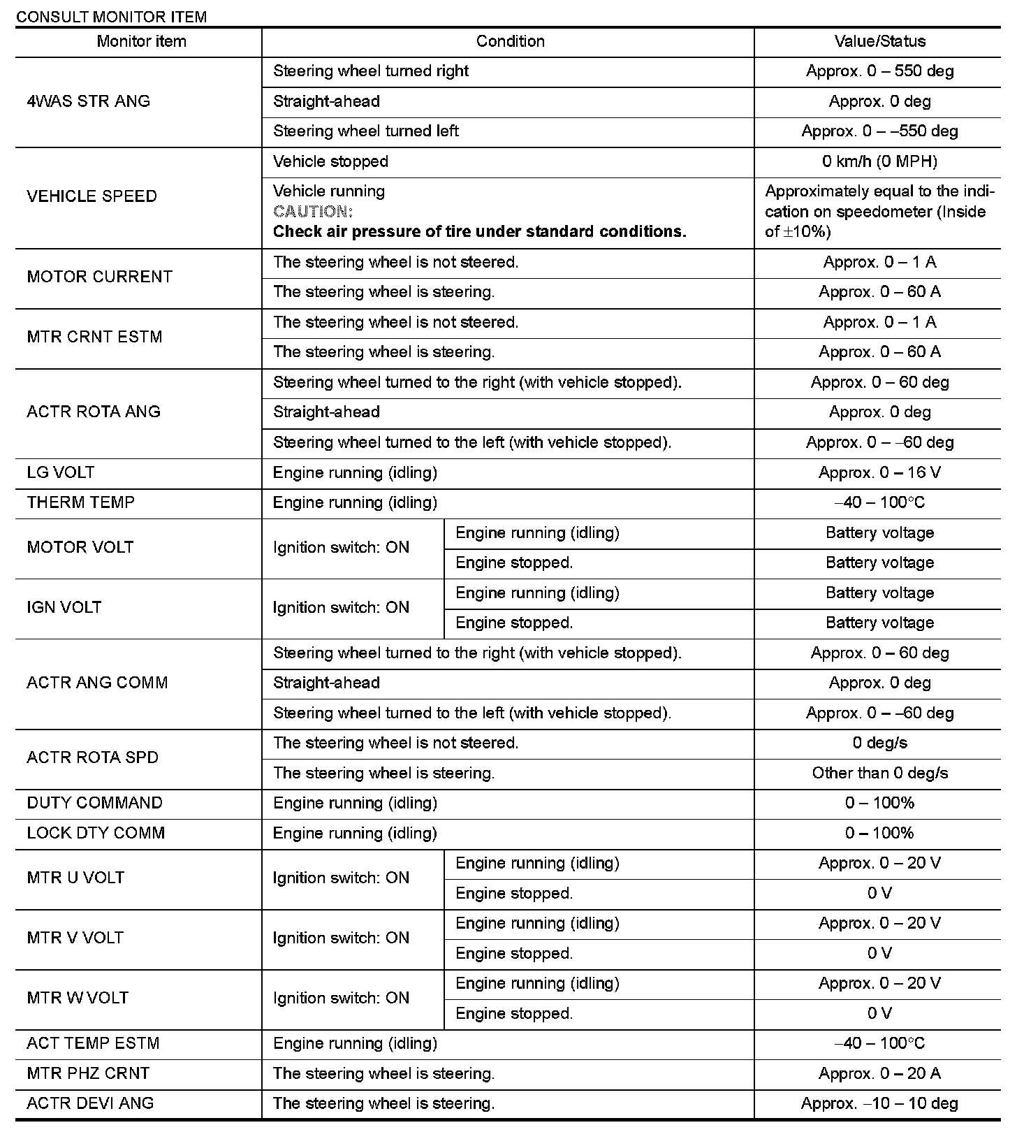 The following table includes information (items) inapplicable to this vehicle. For information (items) applicable to this vehicle, refer to CONSULT display items.